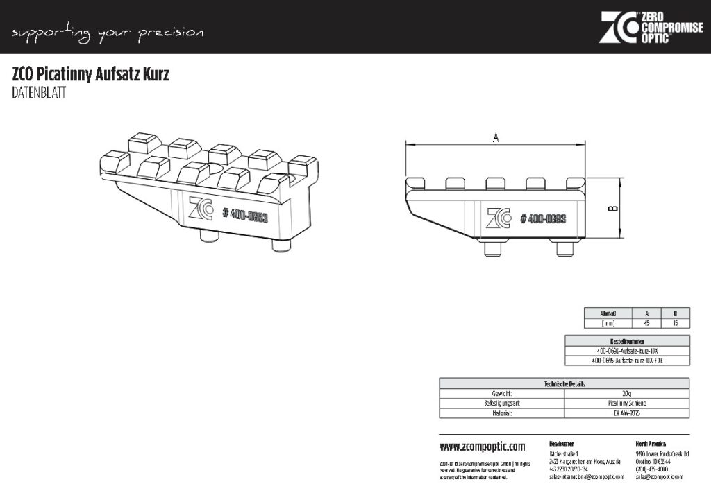 - Kompatibilität: Speziell entwickelt für die Zero Compromise Optics Blockmontagen und Ringmontagen.
